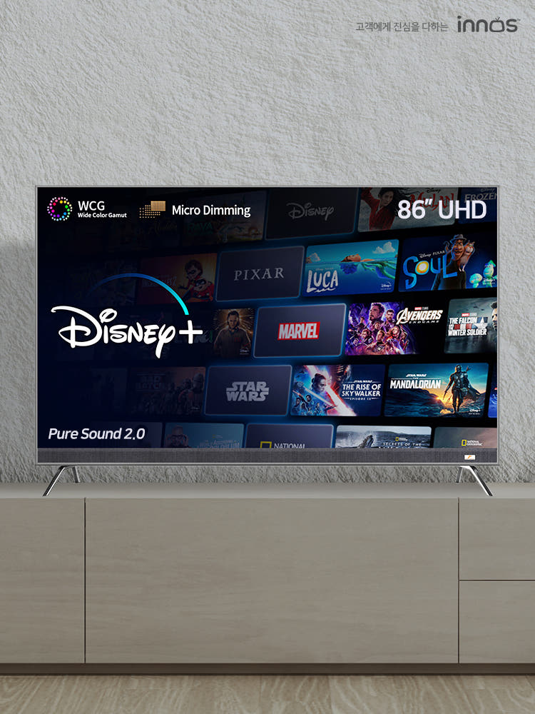 86인치는 상용화된 가정용 TV중 최대급 사이즈에 해당합니다.